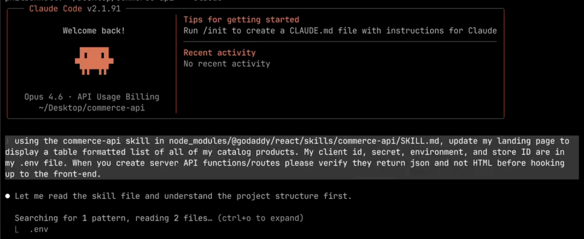 AI coding agents can now connect to the GoDaddy Commerce Platform APIs out of the box. A new skill file shipped with @godaddy/react teaches agents how to authenticate, query Orders, Catalog, Taxes, and Price Adjustments via GraphQL. This builds on the agent-first GoDaddy CLI (github.com/godaddy/cli) — together they enable agentic engineering workflows for building commerce experiences.