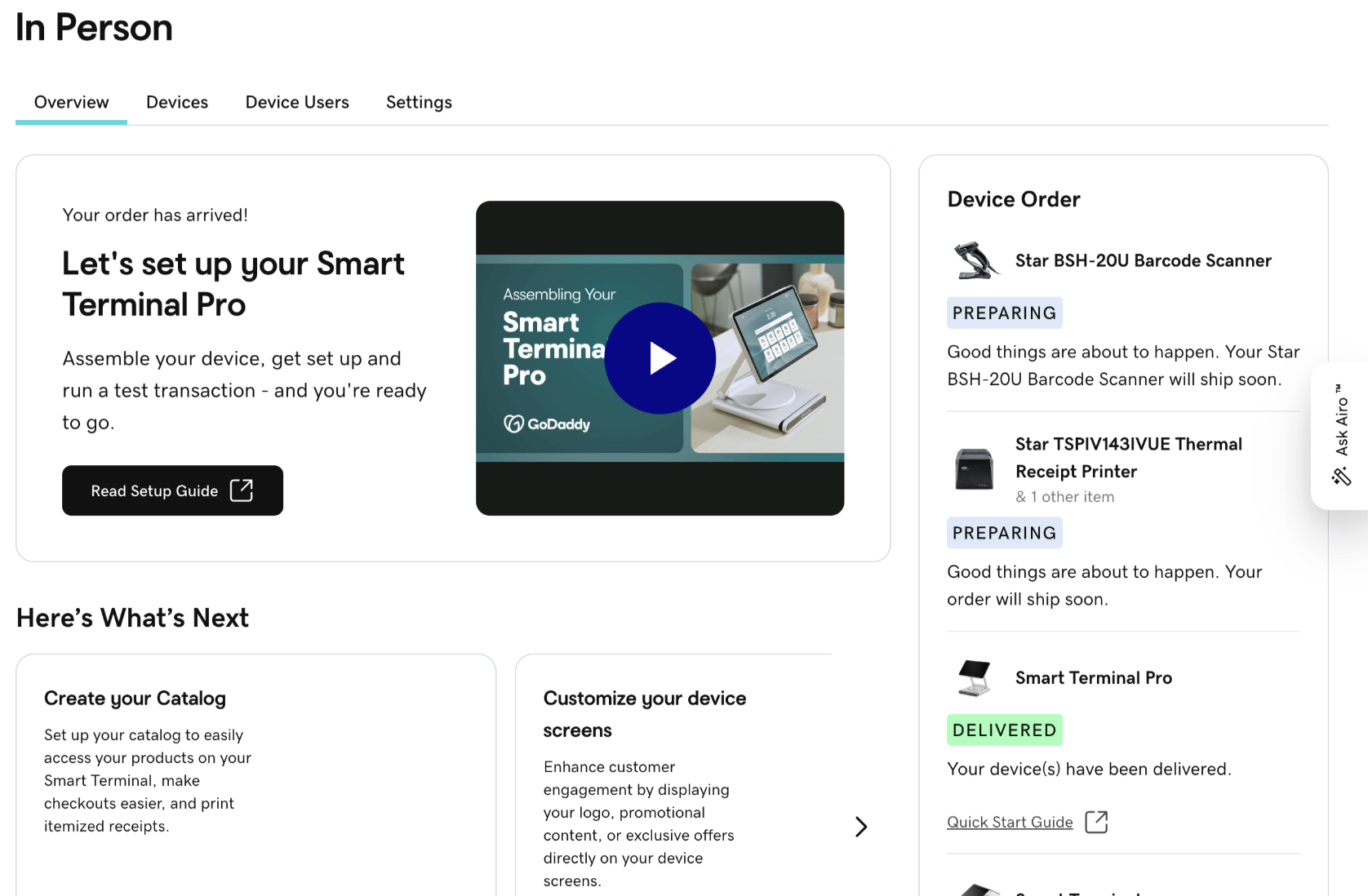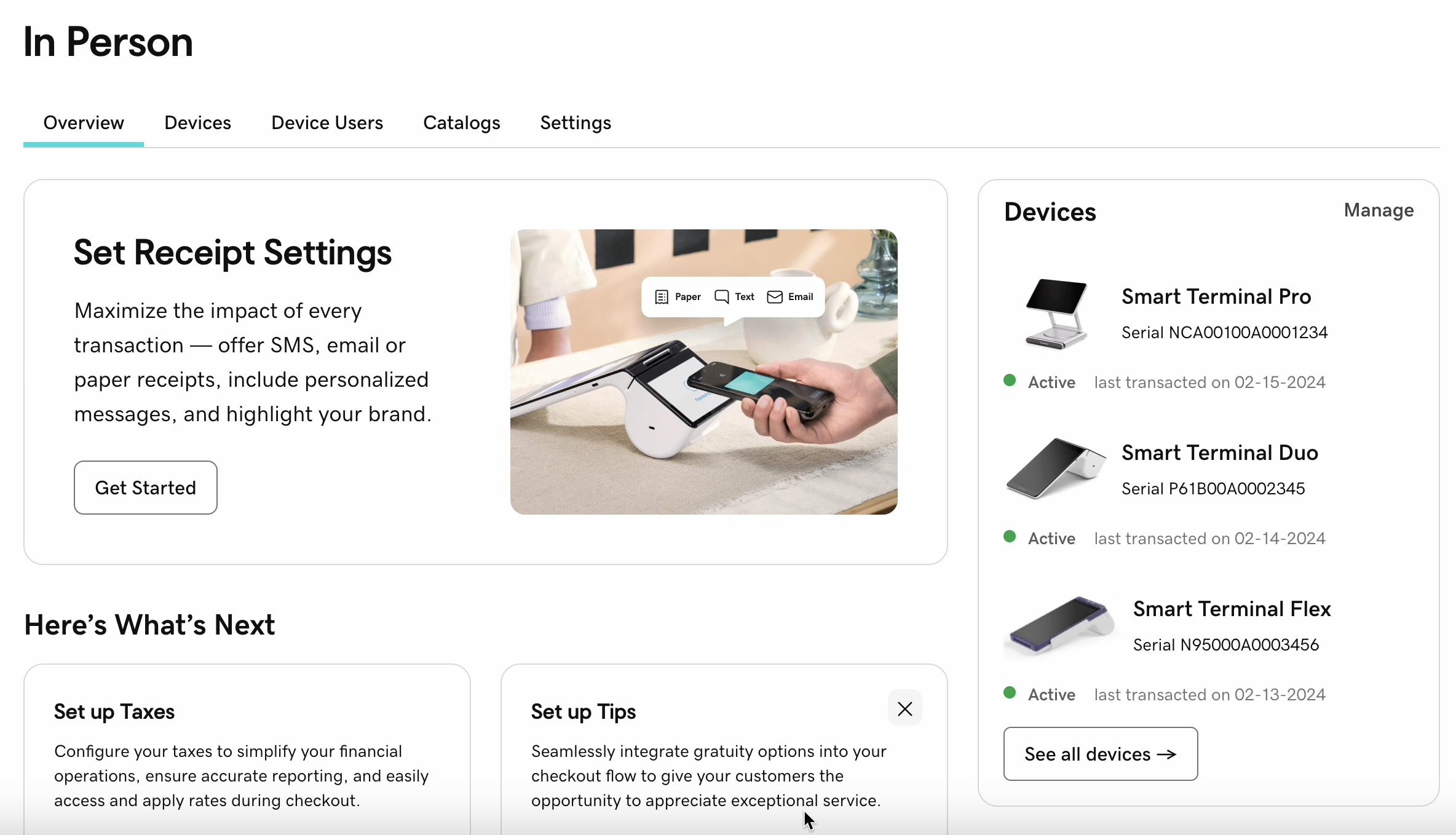 - Simpler hardware setup — updated setup cards walk merchants through onboarding POS devices and accessories like barcode scanners, receipt printers, and cash drawers, with a refreshed Get Help card if they run into issues