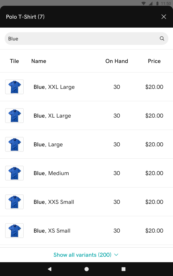 Merchants with large product catalogs can now sort, filter, and search through product variants directly on the POS during checkout. No more scrolling through dozens of options to find the right size, color, or style. Especially impactful for high-volume retail and quick-service environments where every second at checkout counts and mis-taps on the wrong variant lead to order errors.